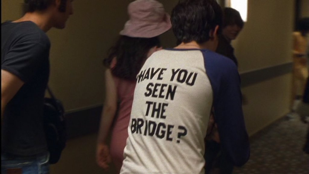 On the school’s campus he flips through Creem Magazine and we follow the voice of rock critic Lester Bangs to a store front window. William watches Bangs give a radio interview from behind the glass and approaches him on the street afterwards. It cuts to the two of them at a diner. Lester warns him that writing about rock music is becoming an “industry of cool.” He gives William an assignment to write a thousand words on Black Sabbath, which takes William to a concert, where he meets Penny Lane, the band aids, and Stillwater. Music is the vehicle for the story. They are one in the same.