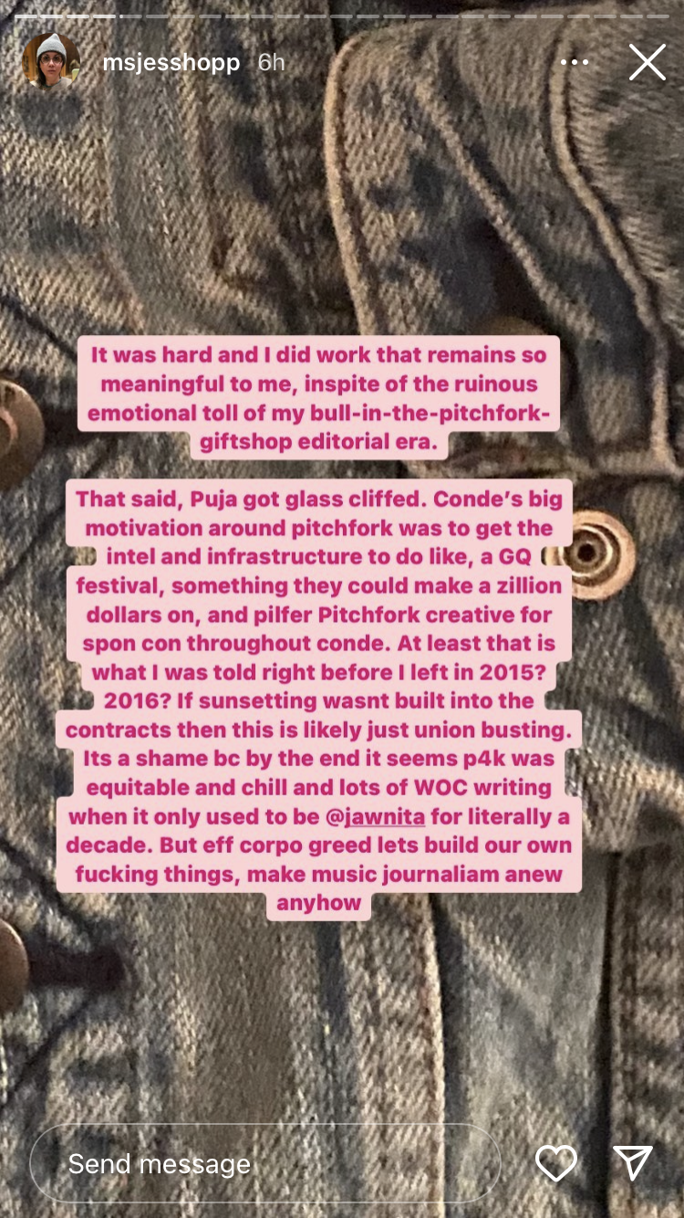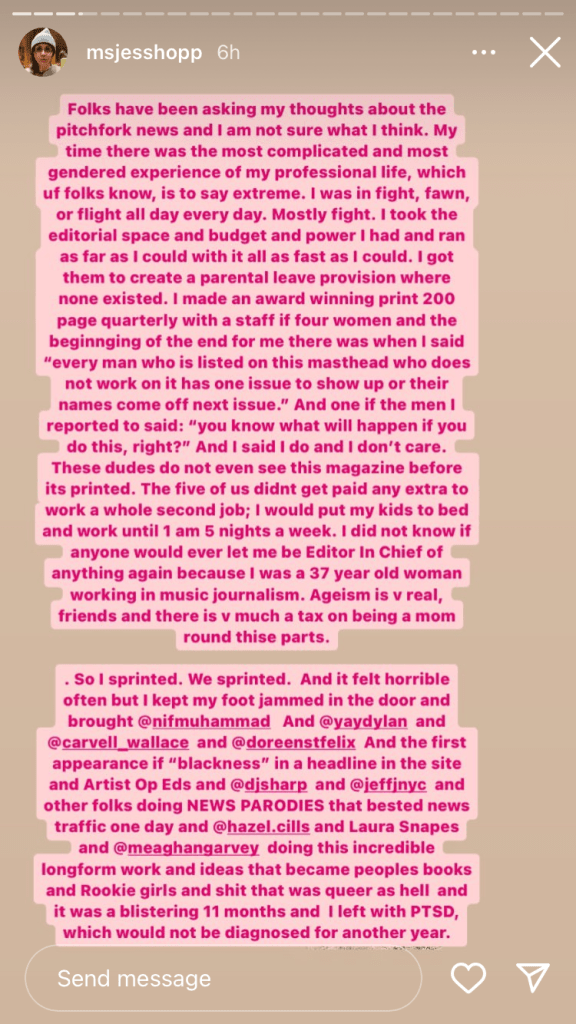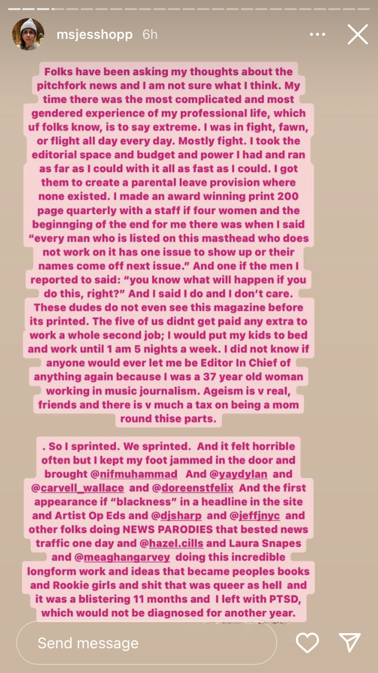Jessica Hopper’s Instagram story this week really shook me to my core. Remember when she was EIC? I will follow you into hell, Jessica. These stories are bananas.